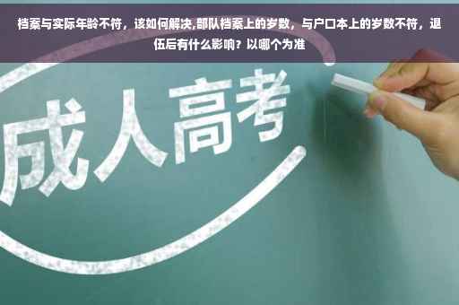 战友你好,我当年入伍时因为年龄没有达到服兵役法定年龄十八周岁,所以将户口年龄改大了两岁,这种情况的人在那个年代较多,但是档案年龄与户口年龄不符,退伍后影响较大,直白点说影响在岗职务升迁,因为干部升迁年龄耍求严格,迢龄不能提升职务任用,到退休年龄后的退休时间都有严格的年龄要求,上面说的都会有直接影响。有实际年龄与档案年龄不符这种情况的退伍转业军人情况有不少,优其是在七、八十年代,原因可能有两个,一个是入伍时年龄不够改大了,另一个是入伍时档案登记信息错误,因为那个年代都是工作人员手写档案,入伍时间段集中,档案较多,时间要求紧,登错年龄在所难免。