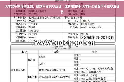 如果大学实行末尾淘汰制,倒数的最后几名不发给毕业证。给学校及系、班主任对学生能否得到最后的毕业形成有主导权。因为所谓的末尾淘汰制,就是对企业中所实施的末位淘汰制的拿来主义。末位淘汰制是指工作单位根据本单位的总体目标和具体目标,结合各个岗位的实际情况,设定一定的考核指标体系,以此指标体系为标准对员工进行考核,根据考核的结果对得分靠后的员工进行淘汰的绩效管理制度。那么把它拿来大学适不适用呢?笔者认为是根本不适用的,因为学生是以学为主,而且教育中的规章制定也没有在大学实行末尾淘汰制的先例。强行实行末尾淘汰制还涉嫌违法,并让大学滋生腐败的土壤。