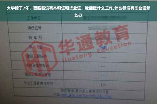 你稀里糊涂读的什么书?就是小学毕业都有一张小学毕业证书啦。大学怎么可能读了七年,没毕业证,难道是其他专业?拿不到证书应该是掛了不少科吧,否则没有这么菜的。现在出来找工作没有大本毕业证的不好使,有一定难度。如不嫌弃酒店、餐馆服务类的服务员,对打工仔要求不高的工作还是会有的。只要肯干,不怕苦不怕累是饿不着的。边干边充实自己,看机会会不会向你招手,在伺机改变自己的命运。