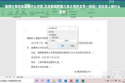 这两个文凭从层次上基本上差不多,都是大专学历文凭,但是性质不一样,五年制高职大专是偏向于技术层面的,普通大专是理论性学术文凭。