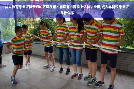 总之,成人教育毕业证和普通高校毕业证是有很大区别的。但也有很多相同点。如果手中只有高中或者中专学历。那么也是很有必要拿上成人教育学历的,起码来说不要让自己落后太多。