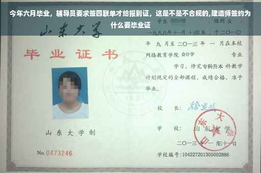这是计划经济时代遗留的产物,是你到某个单位上班了,“报到”了,以后计算工龄等以报到证为准。报到证上写清楚到哪个单位上班从这个角度来说,辅导员要求签四联单才给报到证,这个没有错,因为你没有工作单位,怎么“报到”?