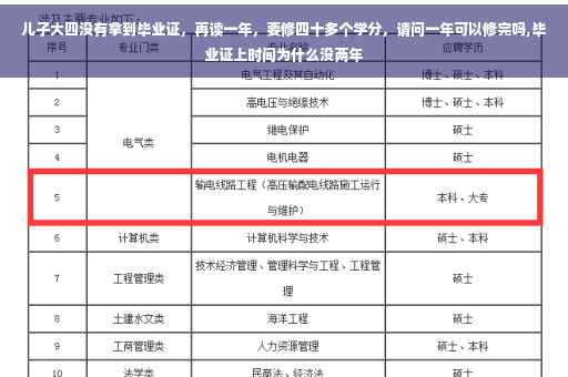 这就要看他努力不了。不过,现在4年制本科生可以读6年,第五年修不完还可以再修一年。不过,你儿子怎么大四了还欠40多个学分啊,我们学校是大三结束时欠17.5个学分就要留级了。现在从2018级开始,挂了好像20学分就没学位证了,除非毕业前成绩能到专业前四分之一或者拿一些学校承认的奖或发表一些文章。