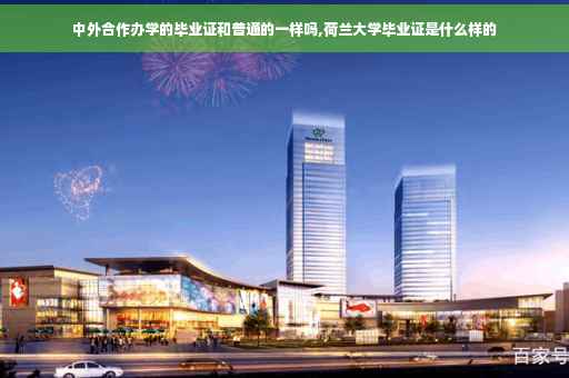 跟普通本科毕业证一样。如果学得好可以拿国外合作大学的学士学位证。根据不同学校的不同规定,有的学校不用出国就能拿到国外的学位,有的学校则规定必须出国。中外合作办学通常是指外国教育机构同中国教育机构在中国境内合作举办的以中国公民为主要招生对象的教育机构,目前所称的中外合作办学一般是指国家鼓励的在高等教育、职业教育领域开展的中外合作办学。办学方式:一是学历教育项目,必须通过统招考试,填报志愿,毕业后分别获得中外双方学校颁发的文凭(如:清华大学与澳大利亚国立大学合作举办管理硕士学位教育项目);一是非学历教育项目,无须填报志愿,参加学校自己举办的入学考试即可。中方学校修得相应学分后,通过语言考试后再被合作学校录取,毕业后获得外方学校颁发的文凭(如:中国农业大学与荷兰万豪劳伦斯坦瓦格宁根大学(原荷兰劳伦斯坦国际农学院)合作举办园艺专业非学历项目)注意:就读非学历教育项目的,若该项目未能获得教育部审核认证,即不能承认该项目所获学历。