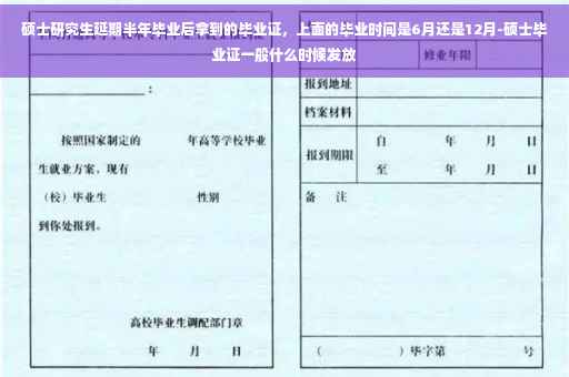 正确答案是12月,下面具体介绍一下:1、延期就是延期,不会给你正常的毕业证书的,否则就不会给你延期了;2、再说了,你怎么知道半年后答辩就一定能过了不是?所以学校不可能在答辩前就印好毕业证书的,一般都是答辩结束,统计好通过答辩的人员名单才可使印制的;3、也有学校给两次机会,第一次没过延期到第二次;毕业证可以这次先发,学位证第二次不过就没机会了。拓展资料:硕士研究生,即攻读硕士学位的研究生,简称硕士生,人们日常生活中所说的考上了硕士,读硕士等,正是指硕士研究生。硕士研究生是本科之后的深造学历,与本科生相比研究生教育更注重培养学生的研究问题和分析问题的能力,特别是该学科科研教学的能力。