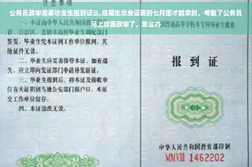 对于应届生毕业当年考上公务员的,政审一般需要学校出具相关证明,比如《在读证明》,能按时毕业拿到毕业证和学位的证明。因为非全日制的学生是没有报到证的,因此,用人单位对应届生的政审一般会要求《在读证明》中写明培养性质,必须是全日制就读的、应届生才可以。不然政审是过不了的。