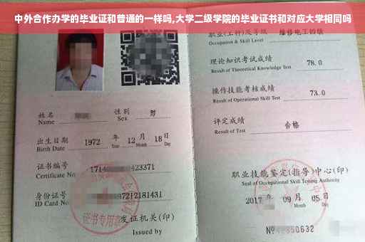 这个问题是这样的,中外合作办学的毕业证书有两个,其中的一个毕业证和普通高等教育毕业证是一样的。