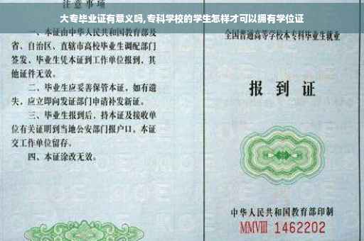 这个问题问的有意思。大专毕业证肯定很有意义的。这个大专毕业证他证明了你学了什么专业?在什么地方学习的,是全日制的还是托管的?只不过大专的文凭比本科毕业要低一个档次而已。但大专生在社会上做的也很出色的,人大把大把的在呀。怎么会认为大专毕业证没有意义呢?哪怕是一个高中毕业证也有意义呀,他要证明我的学历啊,证明我的学习程度到了哪一步啊,是我们人生当中必不可少的一部分。所以请珍惜你的大专毕业证吧。也就是你所经历的人生。