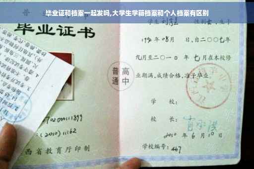 毕业证不会和档案一起发。在你毕业的时候,不论小学、初中、高中,还是大学以至更高的层次,都不可能毕业证和档案一起发给你,学校都是把毕业证发给你,档案是学校保管,并根据你的需要转移给你的工作单位或者你指定的人才交流中心,由相关组织保管。