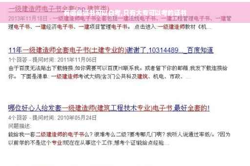 大家好,关于只有大专可以考的证书的问题,于是小编就整理了3个相关介绍只有大专可以考的证书的解答,让我们一起看看吧。