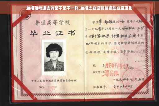 高职单独招生进去的跟高考进去的区别: 1、高职单招高考和高考考大学拿到的毕业证完全是一样的,没有任何区别。