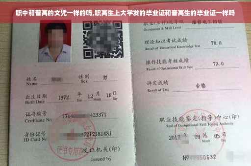 职高和普高大学毕业证是一样。只不过职高本科考核重点是技术技能方面的知识,而普通本科考核的重点是语数外(文综,理综)等自然学科方面的理论知识。