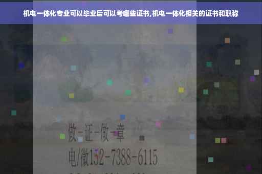 机电一体化专业要拿高级电工证、中级钳工证、中级制图员等证书。 机电一体化技术专业应用领域广泛。毕业生主要可从事数控设备的维护、调试、操作、制造、安装和营销等技术与管理工作,就业岗位群大。