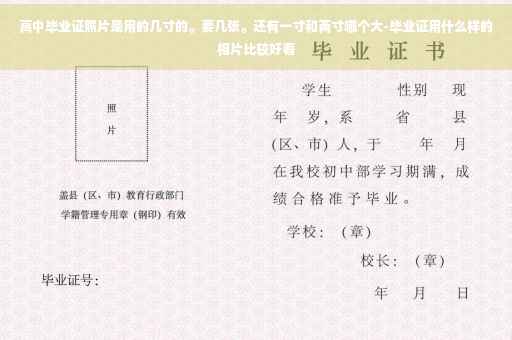 高中毕业证照片应该用的两寸的,红底,要1张就够了。不过高中毕业证不是全国统一的,有时候全市的各个学校都不一样,所以要根据学校的要求。2寸比1大。