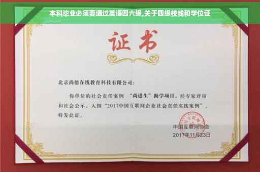 二、根据教育部规定,本科毕业不需要一定要过英语四级,各大高校已经把英语四级证书和计算机二级证书与学位的获取相挂钩的模式取消掉了,即没有这些证书照样可以毕业拿到学位证书,政策并已经颁布实施。