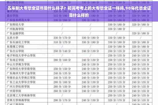 3,不同点:毕业证内容有一点区别,主要体现在学制上,高中参加高考的大专,内容里面只有“三年制专科”字样;五年制毕业证上会注明“初中起点五年制专科”字样,注意关键在于“初中起点”几个字,用人单位一看毕业证就知道是初中毕业读的五年制大专。