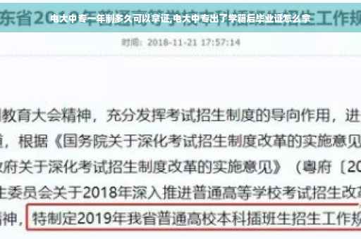电大中专一年制10-12个月毕业拿证,学校规定只需修满毕业学分及满足最低修学年限(300天)即可完成毕业申请;申请毕业后1-2个月纸质毕业证书邮寄到家。
