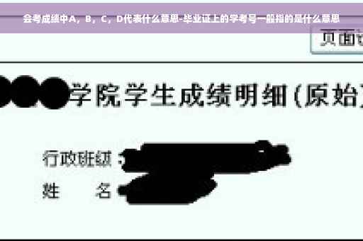 A表示优秀;B表示良好;C表示及格,;D表示不及格;拓展资料;高中会考;高中会考就是高中的毕业考试,分为考试科和考查科,考试科分A、B、C、D四档,C及其以上为及格的,会考全部通过可以领高中毕业证书并参加高考,高中毕业,有资格参加高考。;会考的试题一般不是很难,通过率当然也很高,几乎百分之九十的都能一次性通过的,真过不了的还有多次补考机会。