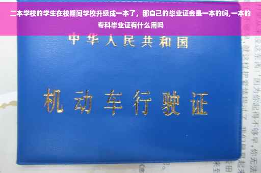 虽然说本科的毕业证不会写着你是一本还是二本毕业的。但如果是专科院校在你读书期间升级为本科院校以后,你毕业的时候所拿到的毕业证仍然是专科毕业证而不是本科毕业证。学校的升级跟你没有什么关系,你是专科进来也还是专科出去。不过你可以在本校进行专升本,两年后拿到的就是本科毕业证了。