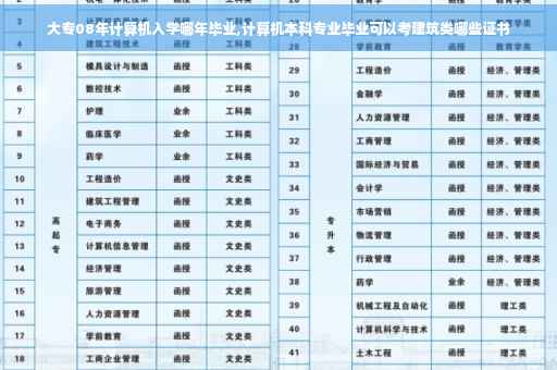 建筑职业技能类证书有架子工、混凝土工、管道工、机械操作工、瓦工、抹灰工、电焊工、吊车工、钢筋工、电工、钳工、装饰木工。还可以考以上各工种的技师和高级技师。国家注册类证书有注册一级二级建造师、注册工程师、注册安全工程师、注册造价师、注册评估师、注册城市规划师、注册建筑师等。一人可以考多个岗位证书、职业技能类证书和国家注册类证书,但国家注册类证书考上多个后只能注册到同一个单位才有效。加油 祝你成功。李宜普到此,以上对于08年计算机专业毕业证什么样的的问题就介绍到这了,希望介绍关于08年计算机专业毕业证什么样的的2点解答对大家有用。