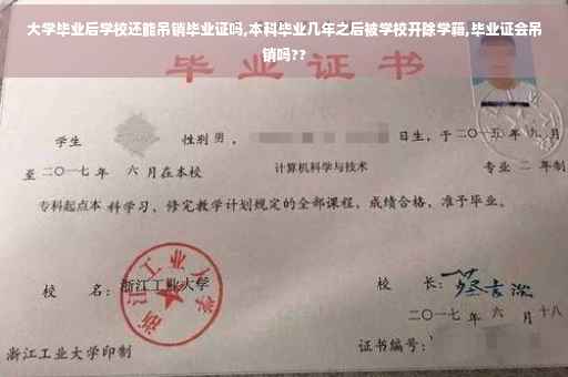 大学毕业后学校是可以吊销毕业证的,特别是研究生学历,现在国家教育部每年都会不定期抽查各大学的毕业生数据,如果发现有不合格或者违规违纪的,比如毕业论文造假,都可以撤销其毕业证和学位证的。当然,如果校方涉嫌侵权,学生也可以通过诉讼方式维护自己的合法权益。