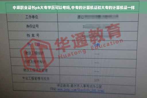 中专的计算机证和大专的计算机证不一样。因为中专属于技能型技术职业高中。大专属于高等职业教育专科。中专跟大专虽然都是学习计算机专业知识,但是中专考取的计算机资格证都是初级或者中级。大专考取的计算机资格证都是高级以上。