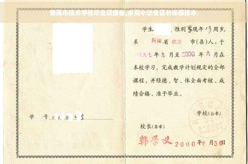 职业高中毕业证的样式通常包括学校的名称、学生的姓名、出生日期、所学专业、毕业时间等基本信息。毕业证通常由教育主管部门或学校颁发,经过盖章和签字等手续,确保其真实性和有效性。