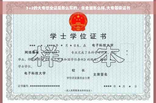 3+2大专是中专学校开设的一种班,就是初中毕业生在中专报名读五年书就可以直接拿大专毕业证了,其实是成人高考大专毕业证,只有通过对口高职进入的大专才是全日制,所以3+2的大专毕业证是成人高考大专毕业证,含金量不如全日制。