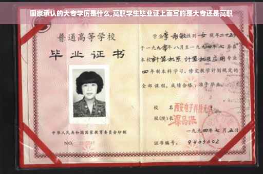 高职,全称高等职业教育。高职学生修完专业所规定的课程且考试合格后,学校会颁发国家承认学历的大专毕业证书,与普通大专毕业生享有同等待遇。