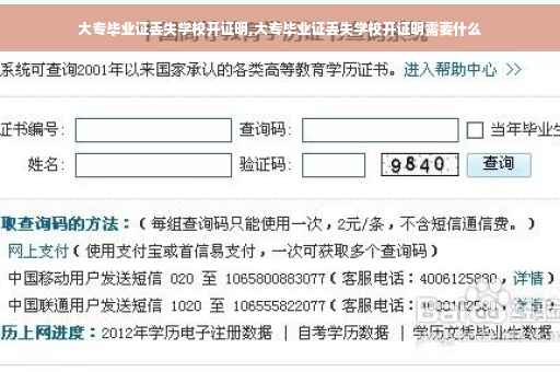 以上就是对于大专毕业证丢失学校开证明的问题就介绍到这了,希望介绍关于大专毕业证丢失学校开证明的5点解答对大家有用。