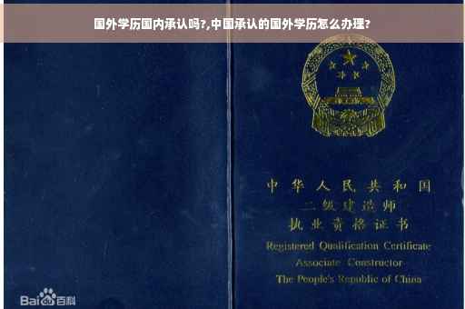 中国对境外教育机构颁发的学位证书、学历证书及其他学业证书的承认,有两种情况:依照中华人民共和国缔结或加入的国际条约办理。中国承认和签署了一系列教育方面的国际条约或协定,依照国际条约,相互承认是对等的。