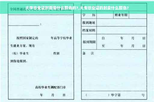 2005届以前,大学毕业证为红色,学位证为蓝色,肄业证是绿色的。2005届以后,大学毕业证和学位证都是深蓝色的,毕业证由学校颁发,学位证由国家教育局统一颁发,每个学位证上都有统一的学位证编号。现在已经取消颁发肄业证,如果没有达到本科毕业要求一般不予颁发证书。