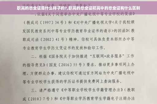 3、中专、职高毕业颁发教育部门印制的中等专业学校毕业证书,如果通过劳动部门的职业资格鉴定考试,可以获得初级或中级职业资格证书,技校由省市人力资源和社会保障厅(局)颁发的中技、高技、预备技师毕业证书。