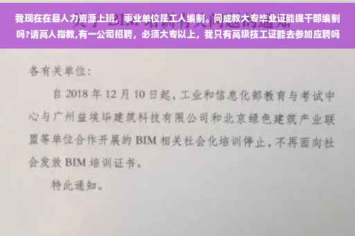 不能提,明确告诉你,事业单位的事业编和工人编有这天差地别,更不要想着干部编制了,只有公务员是国家干部,审批的时候有一张干部任用审批表,你想想你连大专都要成教,凭啥给你编制呢!