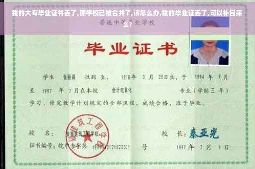 大专毕业证书丢了,原学校已被合并,可以到目前已经合并的高等院校去办理大专毕业证补办手续。