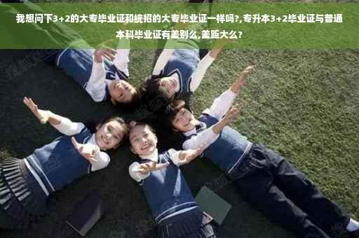学历上3+2大专是大专文凭。而3年制大专也是。两者在毕业证书上的文凭都是一样的,但是要注意有的毕业证书会备注3+2大专。因此,三加二学校的毕业生与其他本科生在就业方面没有区别,都可以选择接着深造或是投入职场。