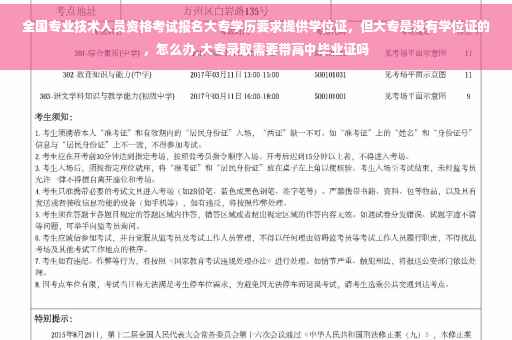 简单地说一下:一般的专业技术人员资格考试有学历要求和工作年限要求;报考的时候需要提供毕业证原件、复印件、学籍或学历认证报告原件、复印件;如果是本科学历及以上才能报考的一般要求毕业证、学历认证报告原件及复印件很少要求学士学位;对需要提供学位证书的都是本科及以上学历的考试。至于你说的专科学历提供学位证书是不存在的除非出现政策失误。
