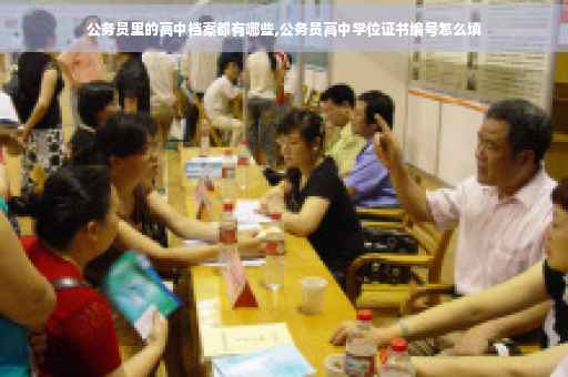 公务员里的高中档案都有学历资料、培训资料。从高中阶段一直到你毕业的所有学历资料,如高中学籍档案、大专报考登记表、成绩表、毕业登记表、毕业证复印件、学信网认证书(在职教育)、学位认定书等等。