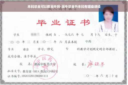 本科毕业可以教高中。根据《中华人民共和国教师法》第三章,第十一条规定:取得高等学校教师资格,应当具备研究生或者大学本科毕业学历。