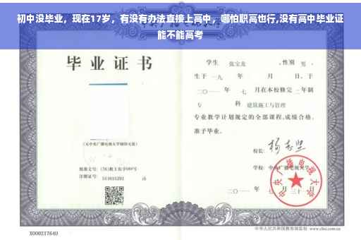 二、不参加中考,想直接参加高考。目前高职高专也在大量招生培养职业人才,这个也可以考虑。但首要条件是要满十八岁,你现在十七岁还未达到年龄要求。