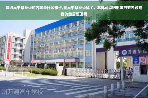 高中毕业证掉了,最好不要把朋友的姓名改成自己的, 高中毕业证书由省教育厅统一管理,省、市两级教育主管部门审查、验印,毕业证书一律于毕业当年颁发,不予补发。但教育局可以办理基础教育学校毕业证书遗失证明,具体程序如下:(1)本人到原毕业学校查核毕业证书存根或出具证明;(2)本人登报声明原证遗失作废;(3)本人持证明、报纸、照片等材料到市教育局基础教育科申报;(4)教育局核发遗失证明。 如果只是出国留学需要,到学校开具高中毕业证明及高中三年学习成绩后,再到公证处做个公证也就可以了。