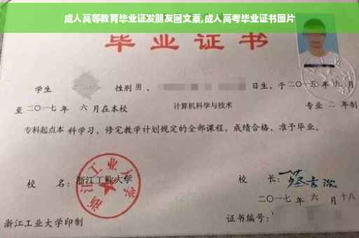 成人高等教育毕业证有以下朋友圈文案: