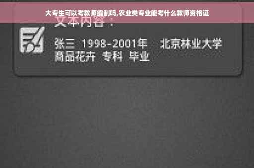 师范专业可以报考教师招聘的编制。非师范类学生要取得教师资格,2012年开始全国统考,笔试必须通过教育知识与能力和综合素质,中学的还要多加一门专业知识的考试。需准备复习参加教育部门举办的考试或者去考自学考试相关的科目。