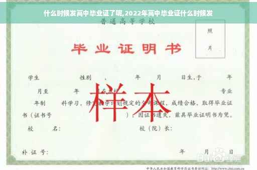 2022年高中毕业证是在六月份左右发,一般高考完之前,大多数学校就已经下发在同学们的手里了,只要修满三年的学分,学校即可颁发毕业证书,有的学校也会在高考完之后发,每个学校颁发的时间都有所不同的,不过大多数的学校还是六月份左右发的