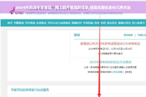2004年高中毕业证网上不能查到。高中毕业证在网上是查询不到的,用人单位如果想要查询高中毕业证一般通过电话询问毕业院校确认。网上只记录大专及以上高等教育的学历信息。
