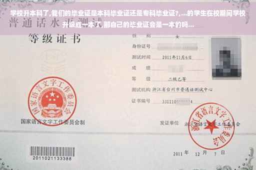 学校升本了我们的毕业证学校升本了我们的毕业证是本科毕业证还是专科毕业证。那如果你本科毕业了,就是本科毕业证,如果。本科学校还没毕业那你就专科毕业的