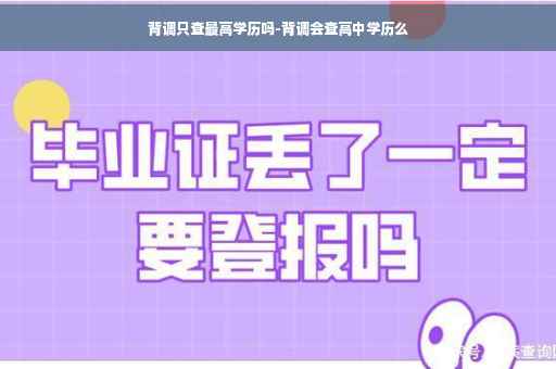 背景调查并不是说只差最高学历,一般是从高中开始查,也就是说高中在哪里读书,接下来本科在哪里读书,或者说研究生在哪里读书。这些学历都是要查的,并不会只差最高学历。因此个人在填写人事相关表格时,一定要做到诚信,千万不能乱填。