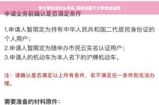 驾驶证不属于大学毕业证。中华人民共和国机动车驾驶证,简称驾驶证,又作“驾照”,是依照中华人民共和国法律而制定的机动车辆驾驶人员所必需申领的证照。在道路上驾驶民用机动车辆的人员,须依照《中华人民共和国机动车驾驶证管理办法》申请领取机动车驾驶证。机动车驾驶证全国有效。机动车驾驶证记载持证人的身份证件号码、姓名、性别、出生日期、长期住址、国籍、准驾(学)车型代号、初次领证日期、有效期和管理记录,并有发证机关印章、档案编号和持证人的照片。机动车驾驶证式样由公安部规定。