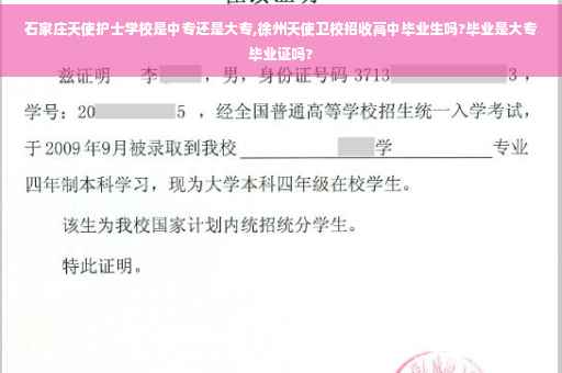 招收高中及中专毕业生,是大专毕业证。根据徐州天使卫生职业学院的官方网站信息,该学院招收高中及中专毕业生,以及其他具有同等学力的学生。高中毕业生是可以报考徐州天使卫生职业学院的。徐州天使卫生职业学院是一所卫生类职业学院,该学院的毕业生可以获得大专毕业证书。根据学院官方网站的相关信息,该学院开设的专业包括医学类、护理类、口腔医学类、中药类、康复类、社会医学与卫生管理类等,这些专业属于大专层次的职业教育,毕业生可以获得大专毕业证书。