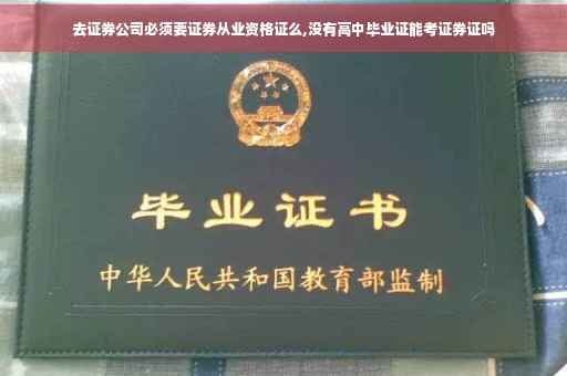 去证券公司就必须要证券从业资格证书。这是属于一种国家的规定。证券从业资格证书可以去考试获取。但该证件的有效期是一年。一年之内持证者必须要上班,找到工作。否则过了一年这个证件就无效,要重新考取。